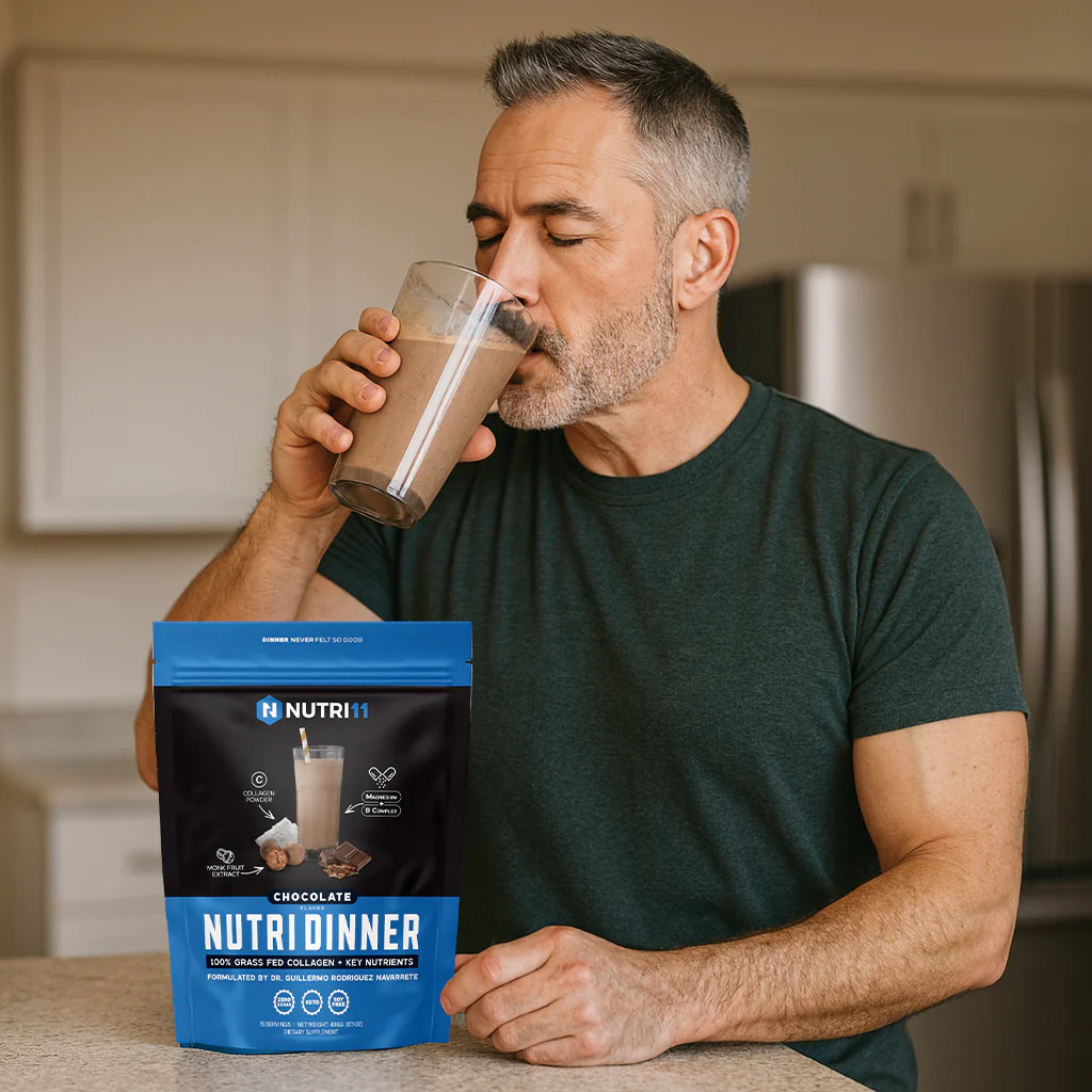 Termina tu día con un batido nutritivo y delicioso con NutriDinner Chocolate de Nutri11.